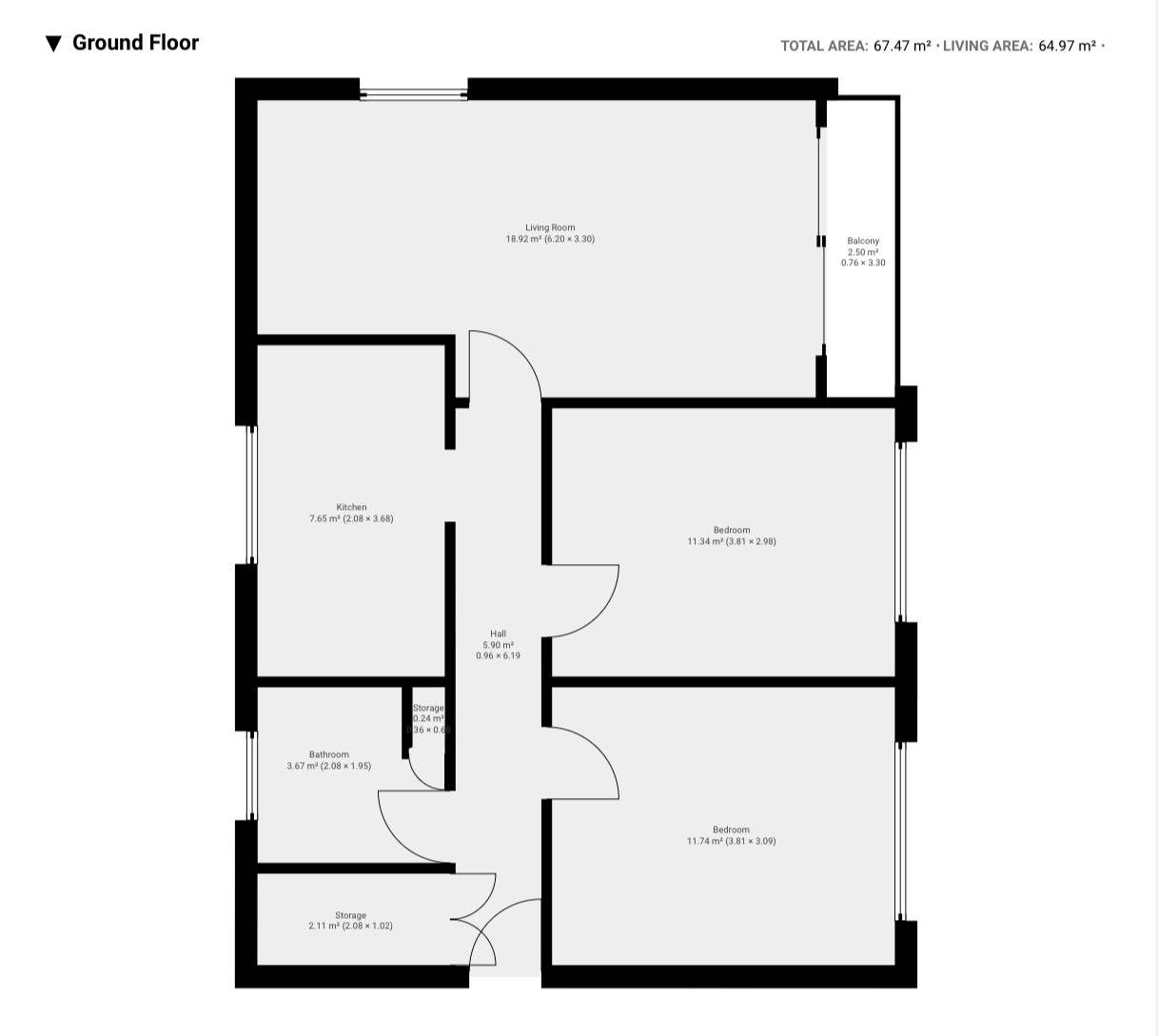 Approx. Total Floor Area: 64.97 Sq. M.