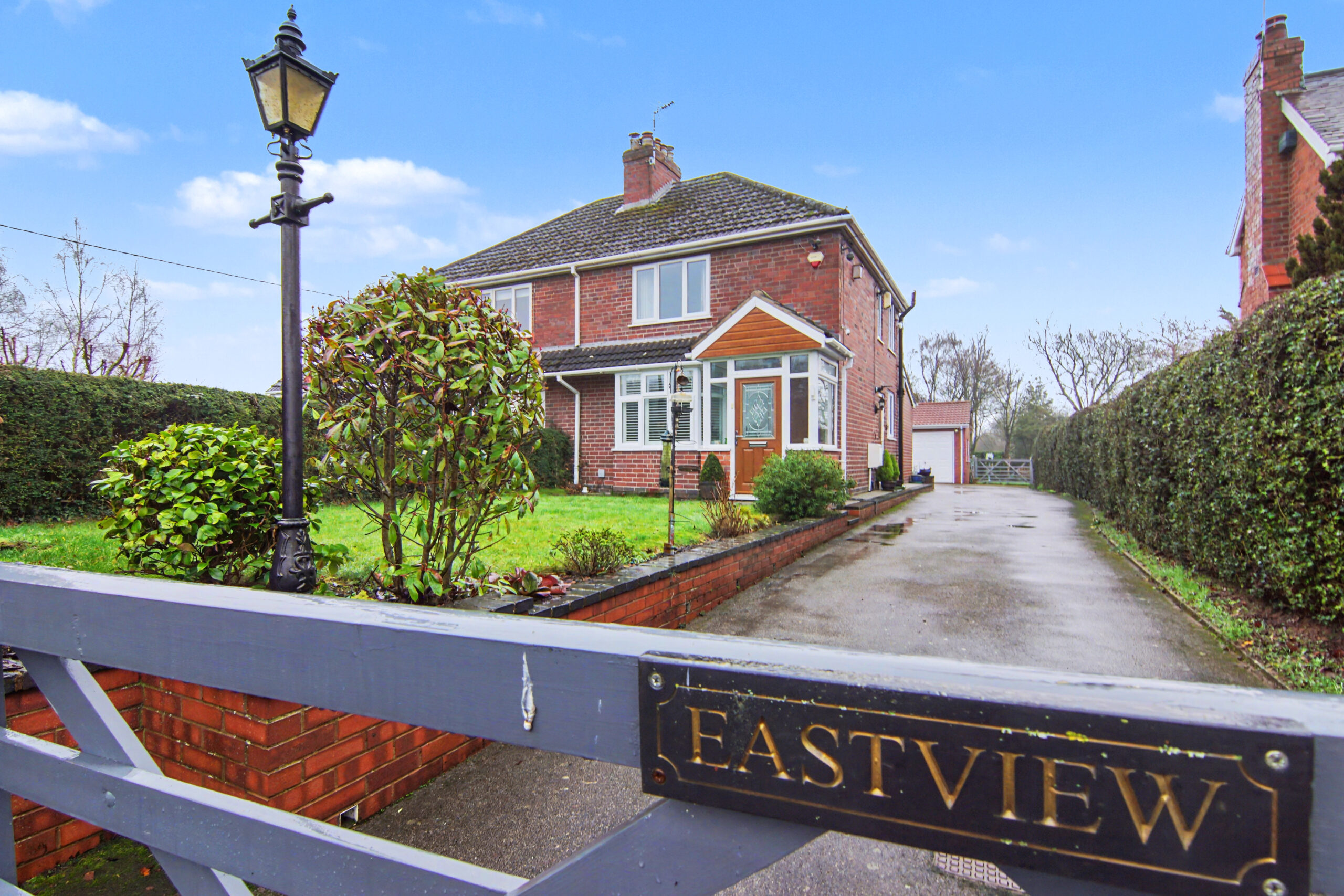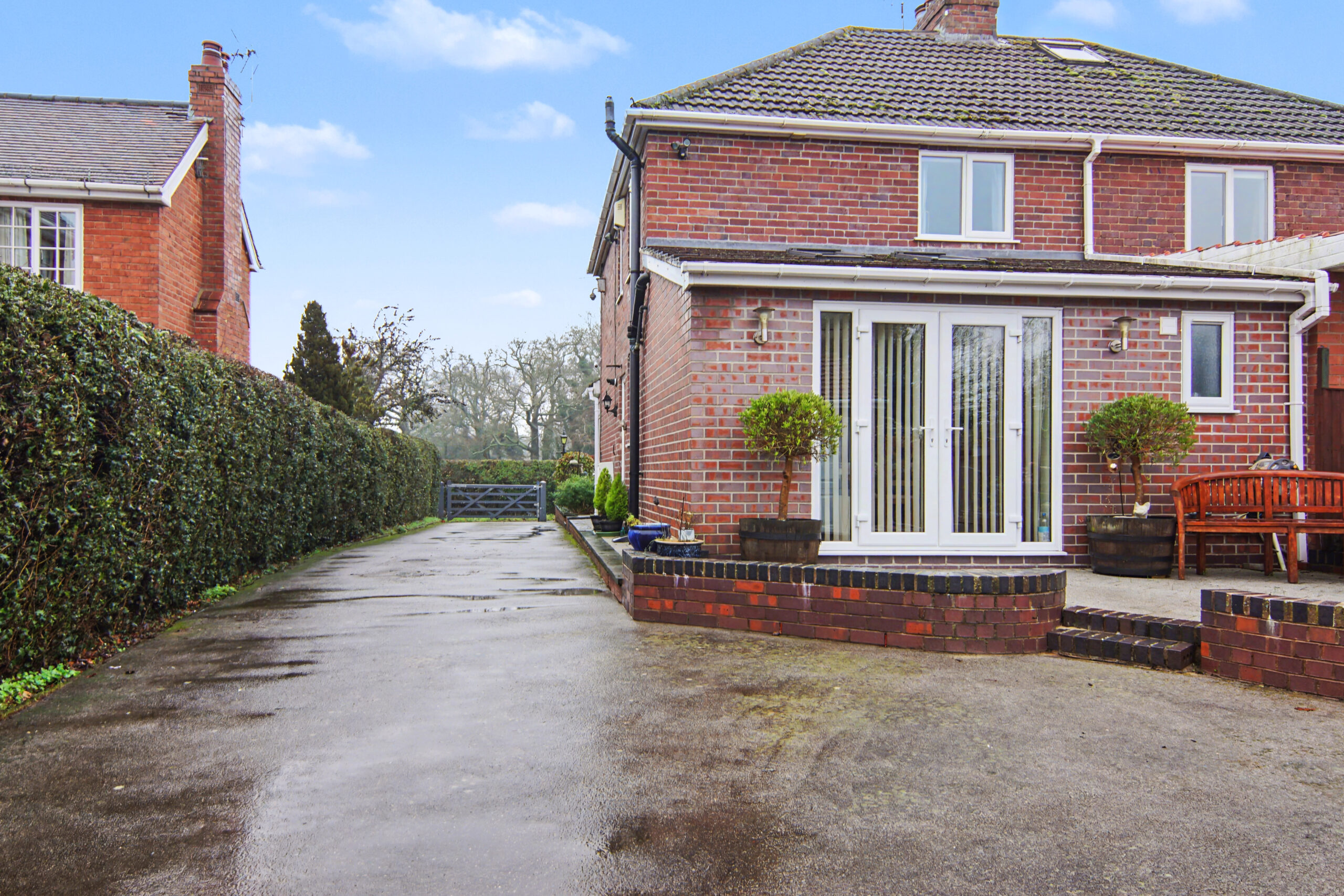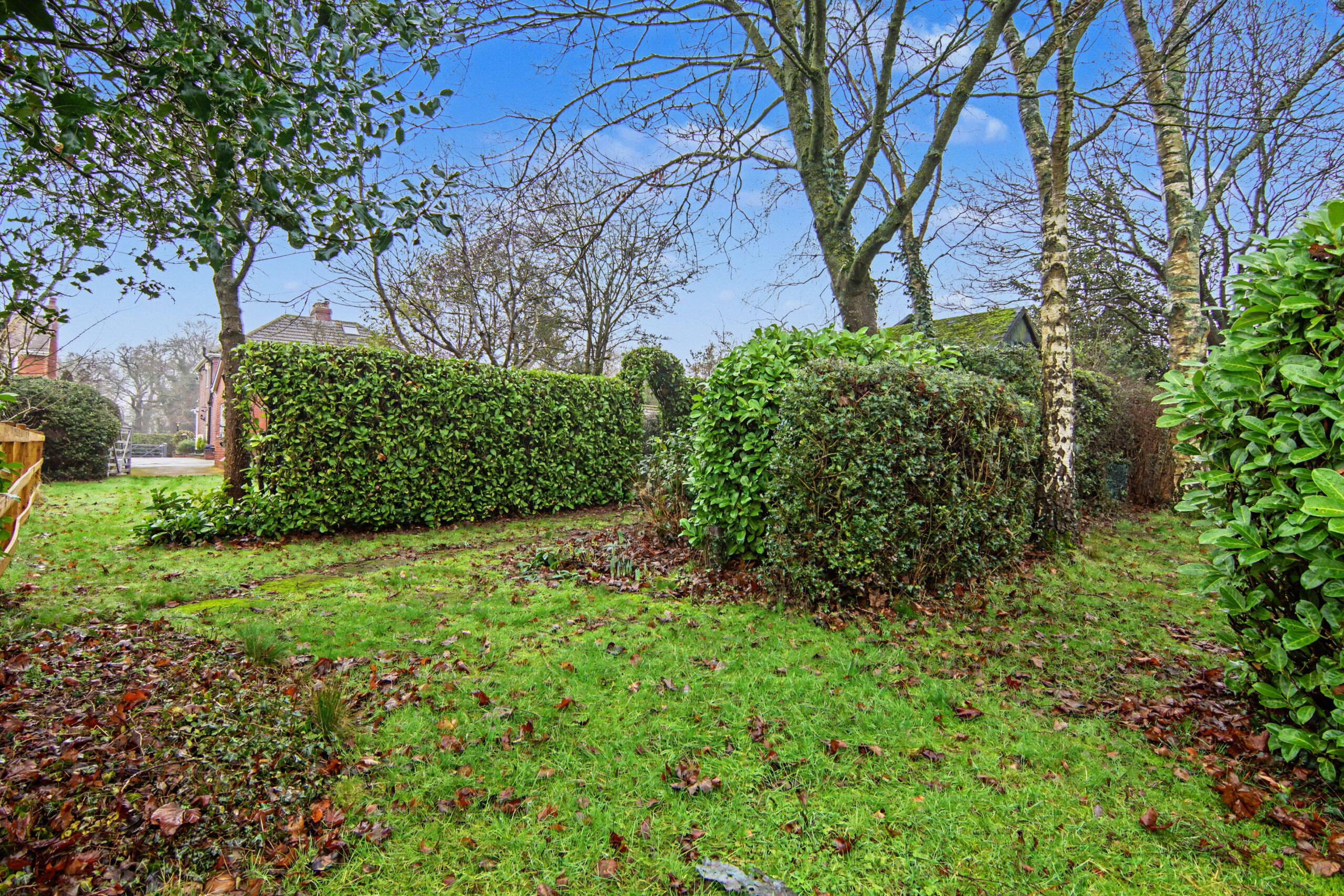 Front: Lawn | Large Driveway | Shrubs | Gated