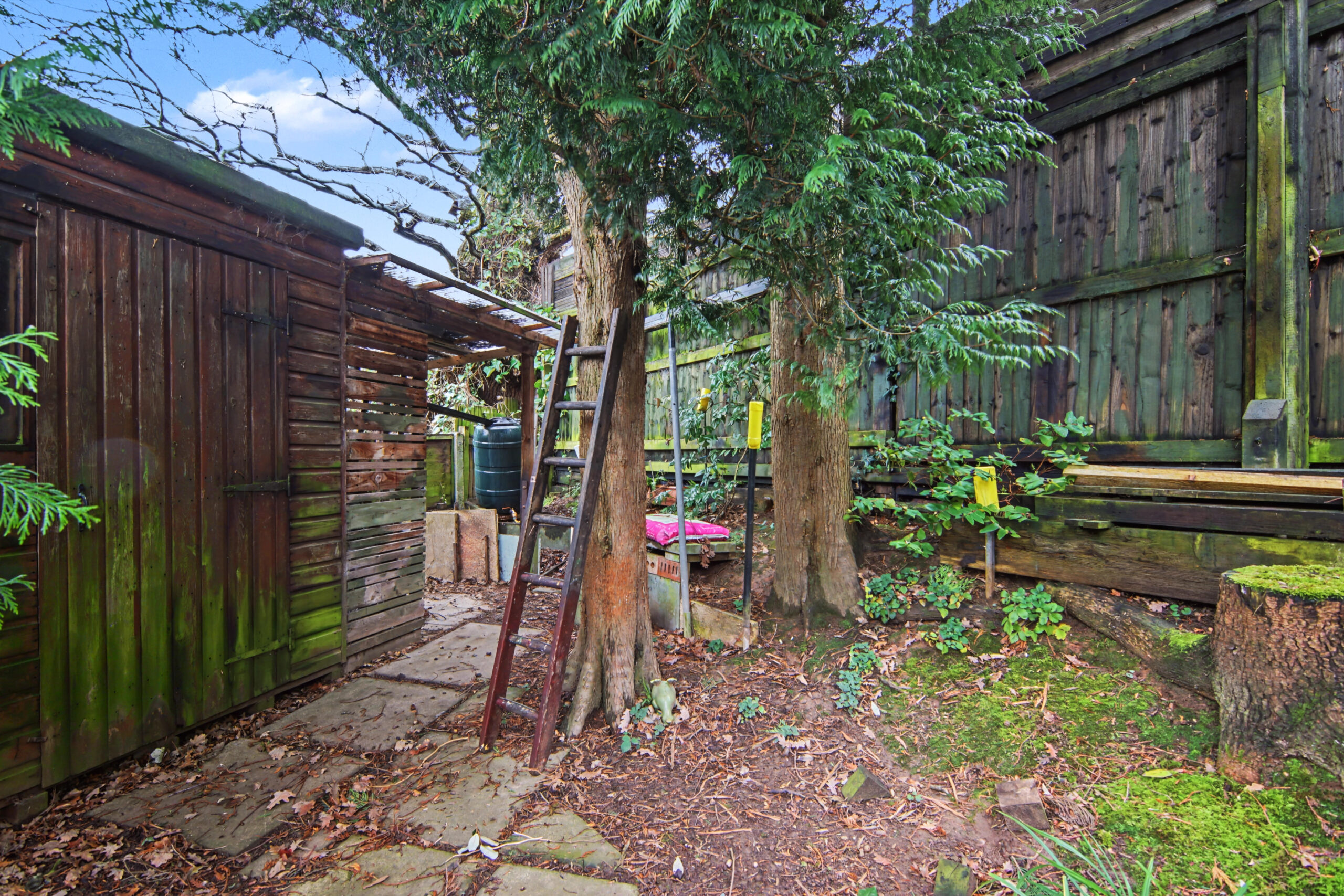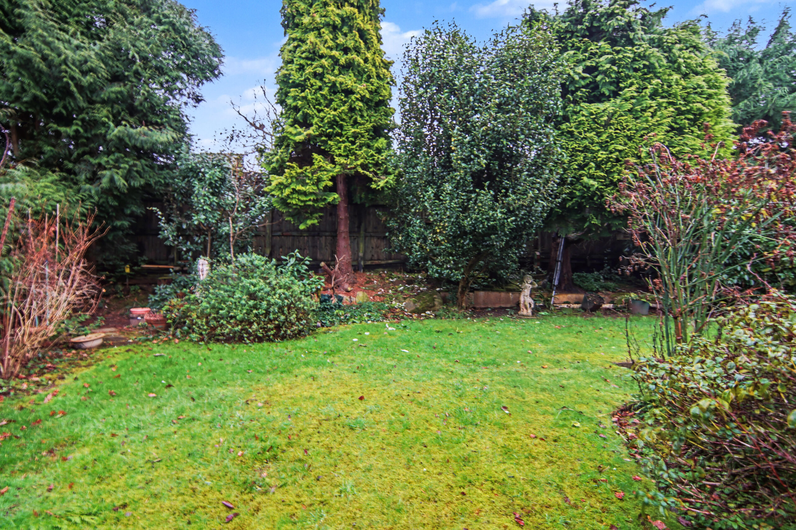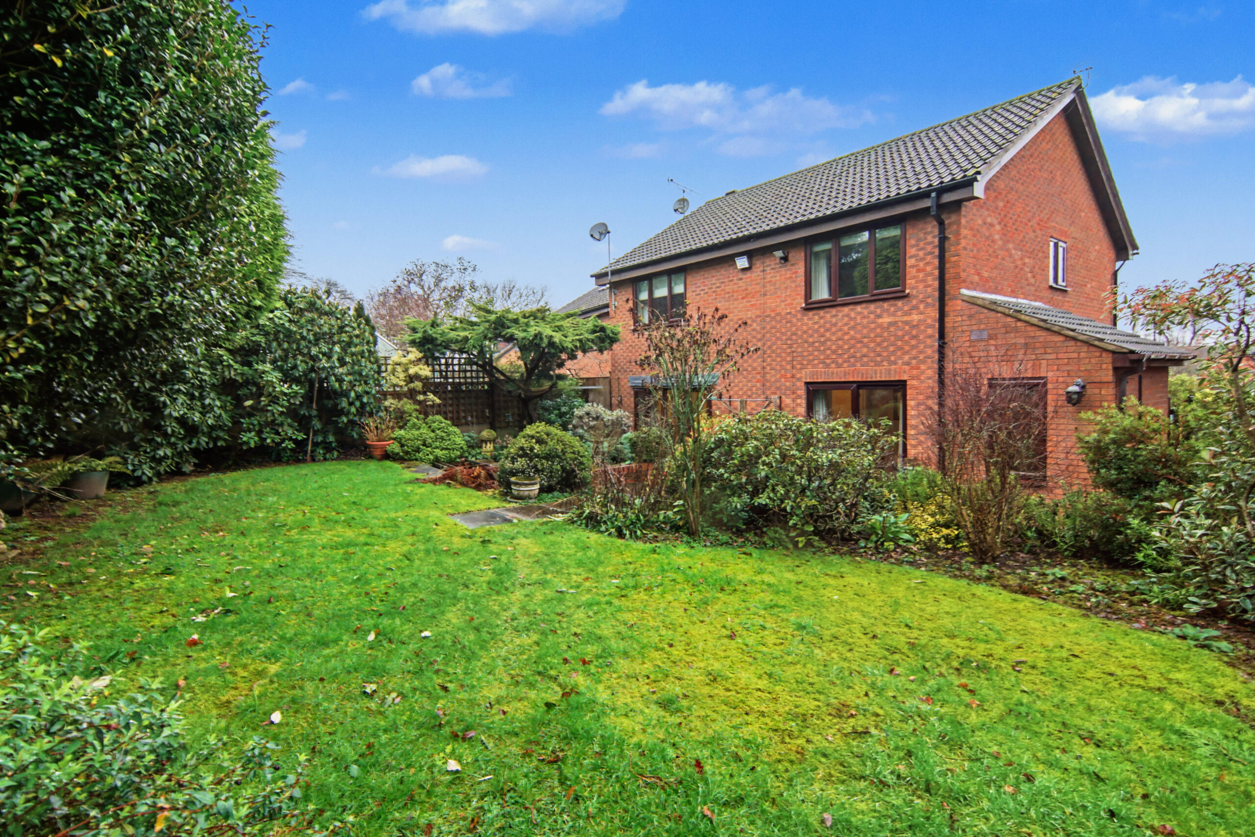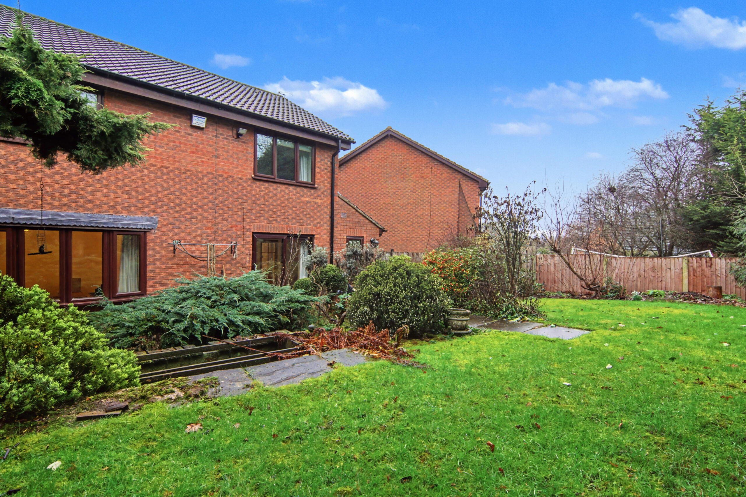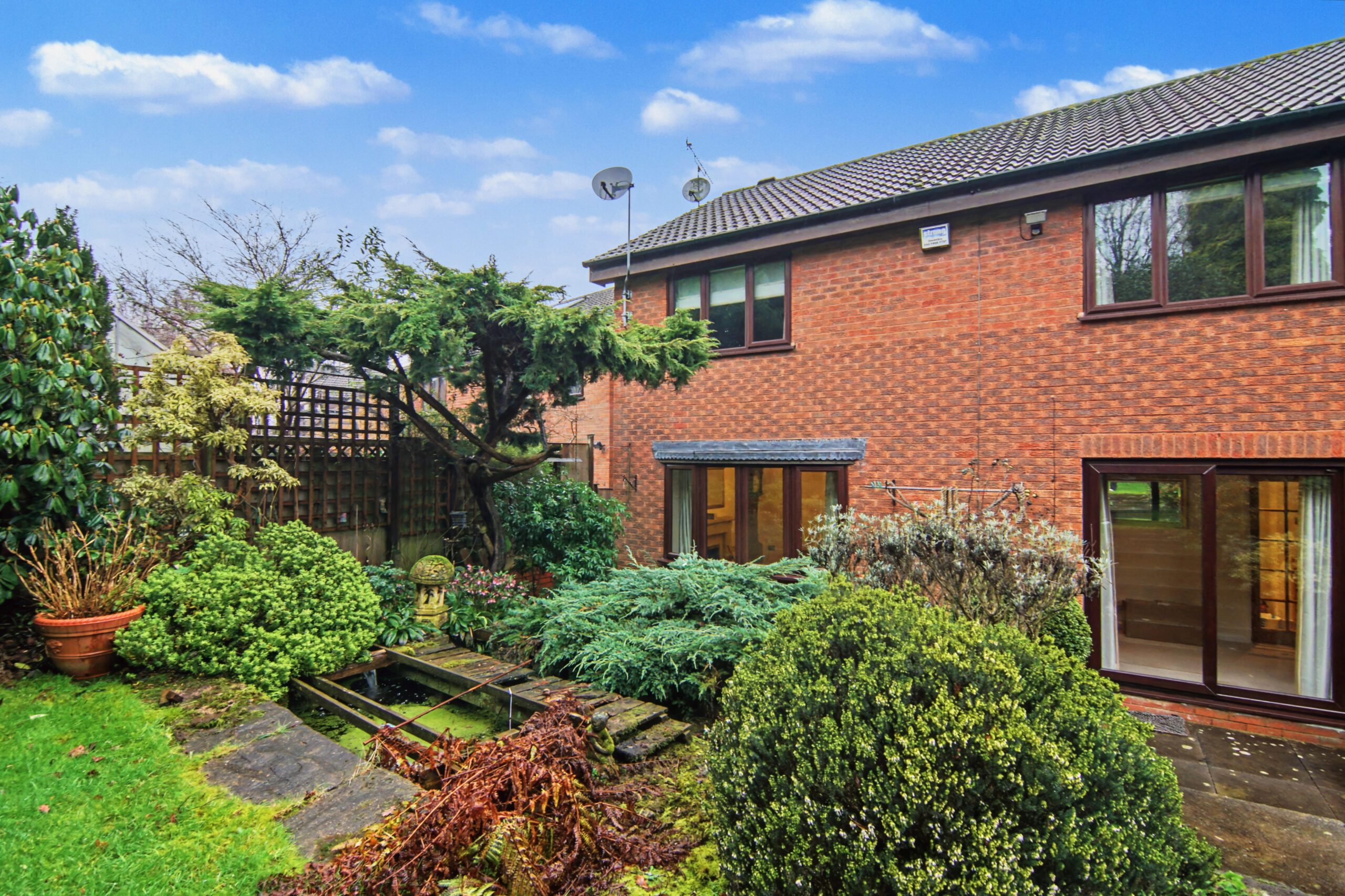 Rear: Lawn | Patio Area | Shed | Pond | Shrubs | Mature Garden