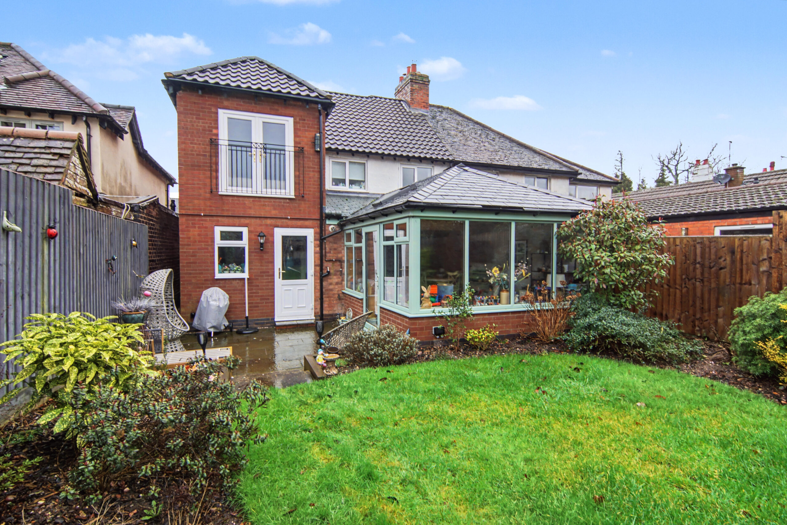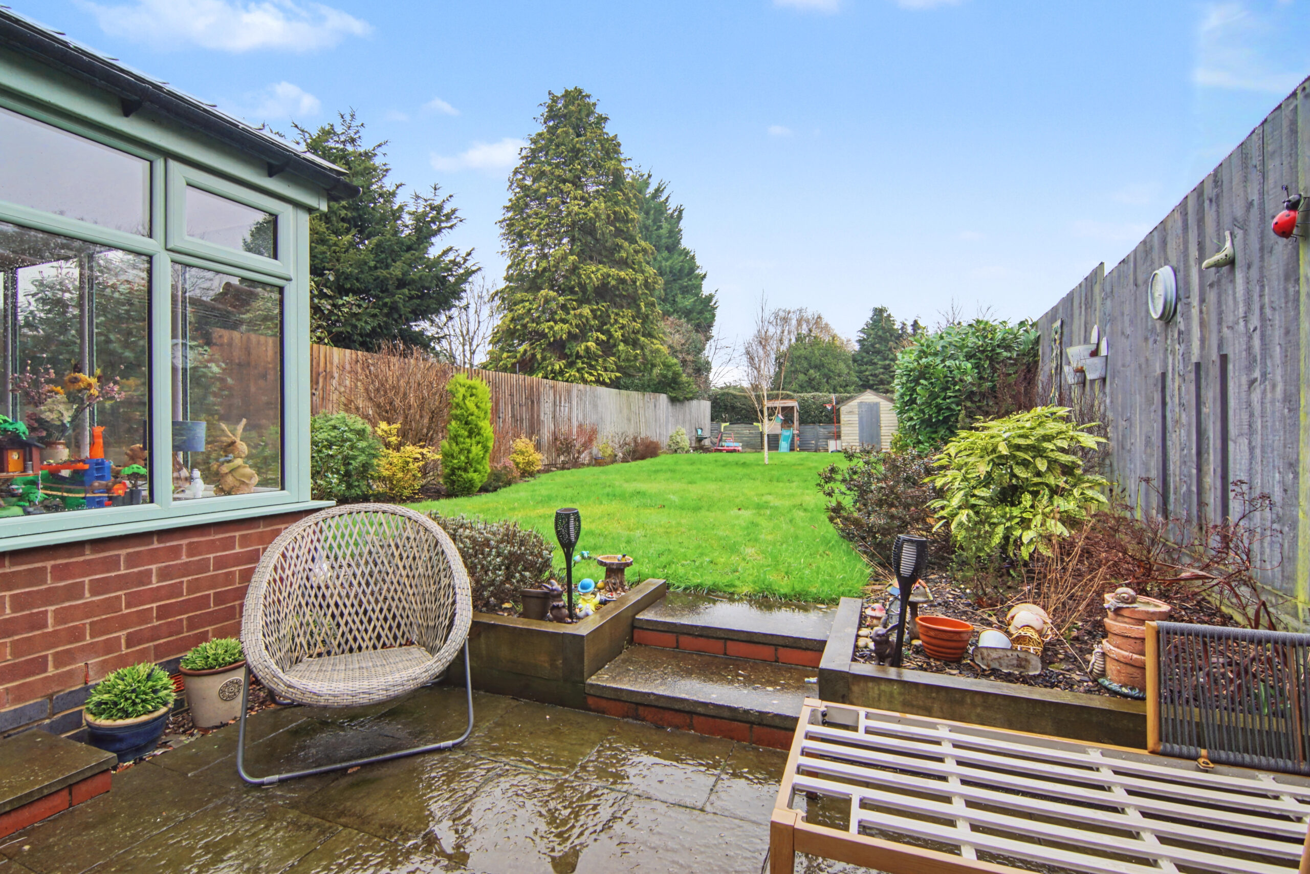 Rear: Lawn | Patio Area | Shed | Shrubs | Large Garden