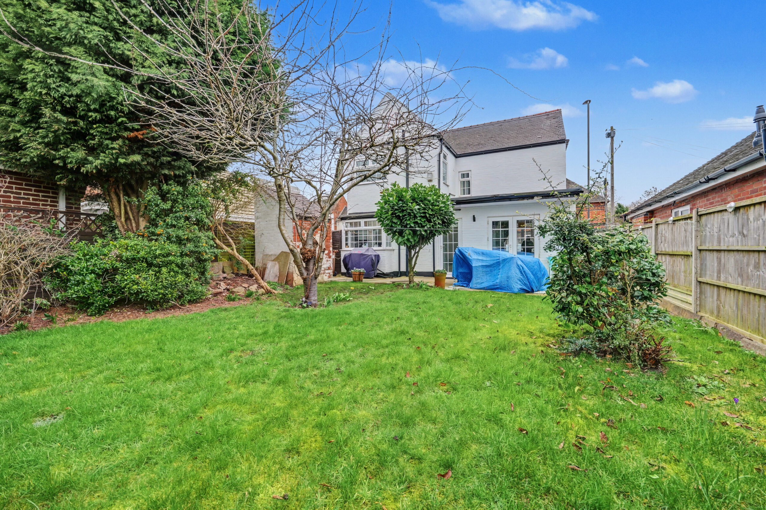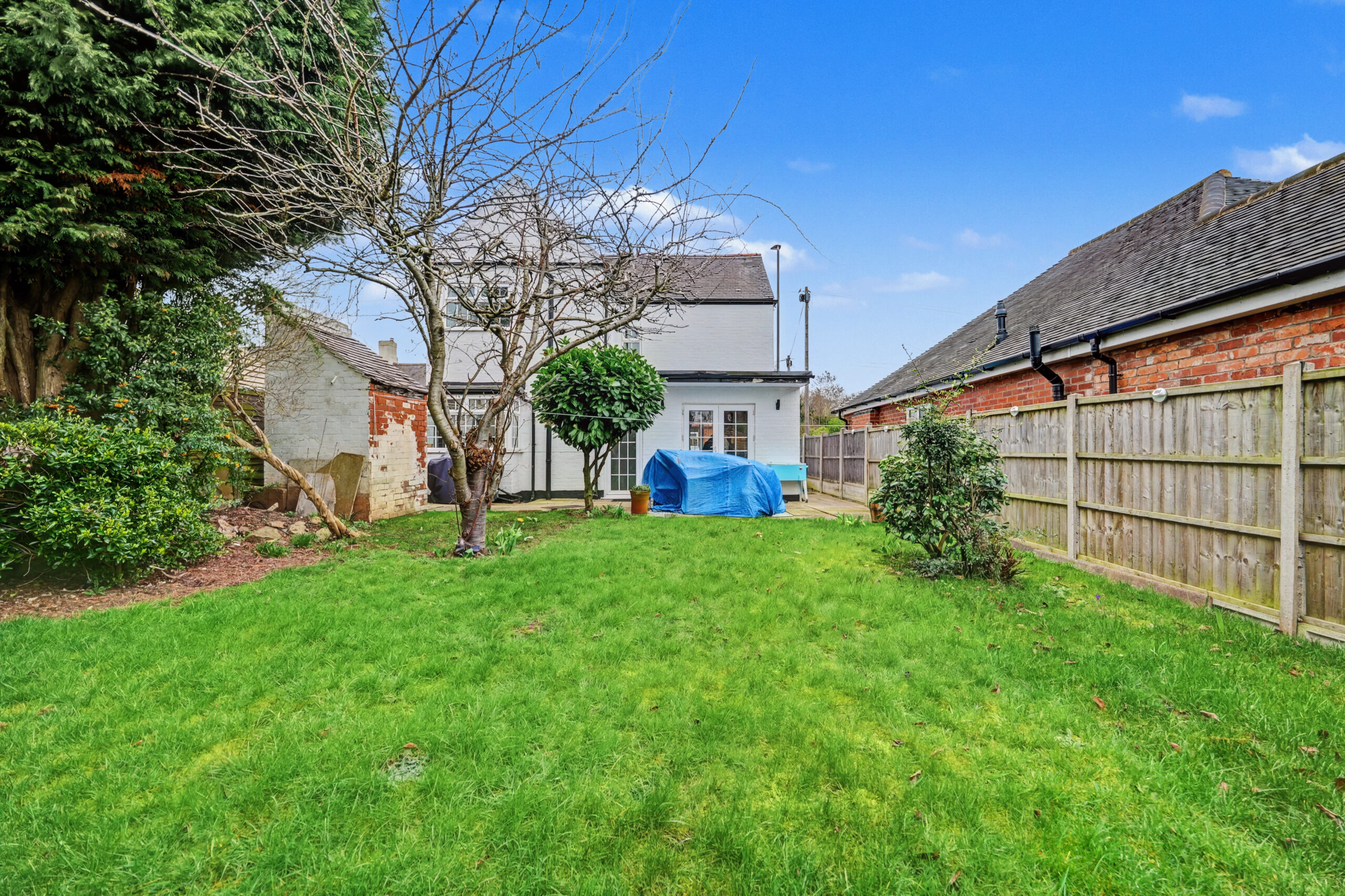 Rear: Lawn | Patio Area | Shed | Shrubs | Mature Garden | Outbuildings