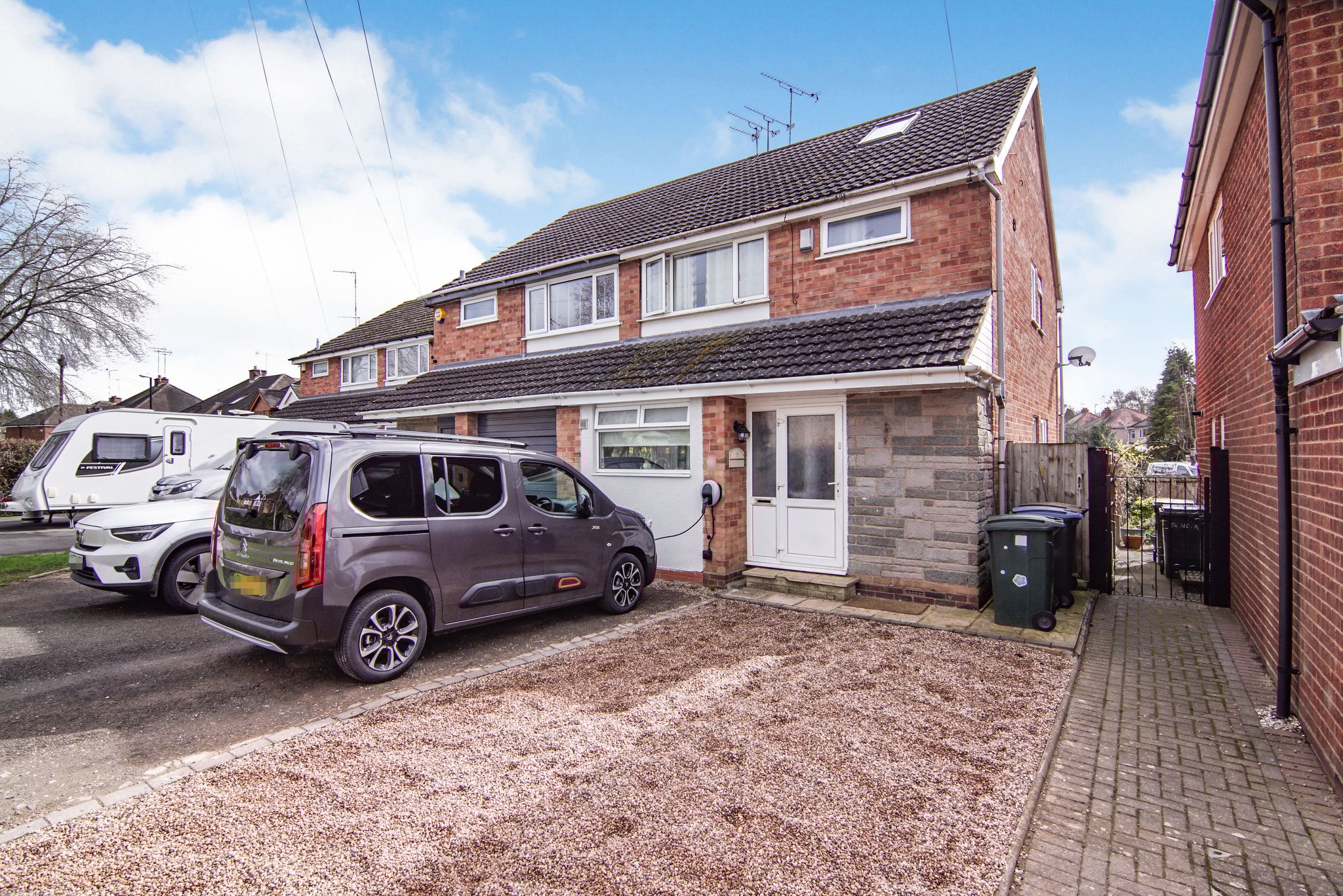 Front: Generous driveway offering parking for multiple cars.