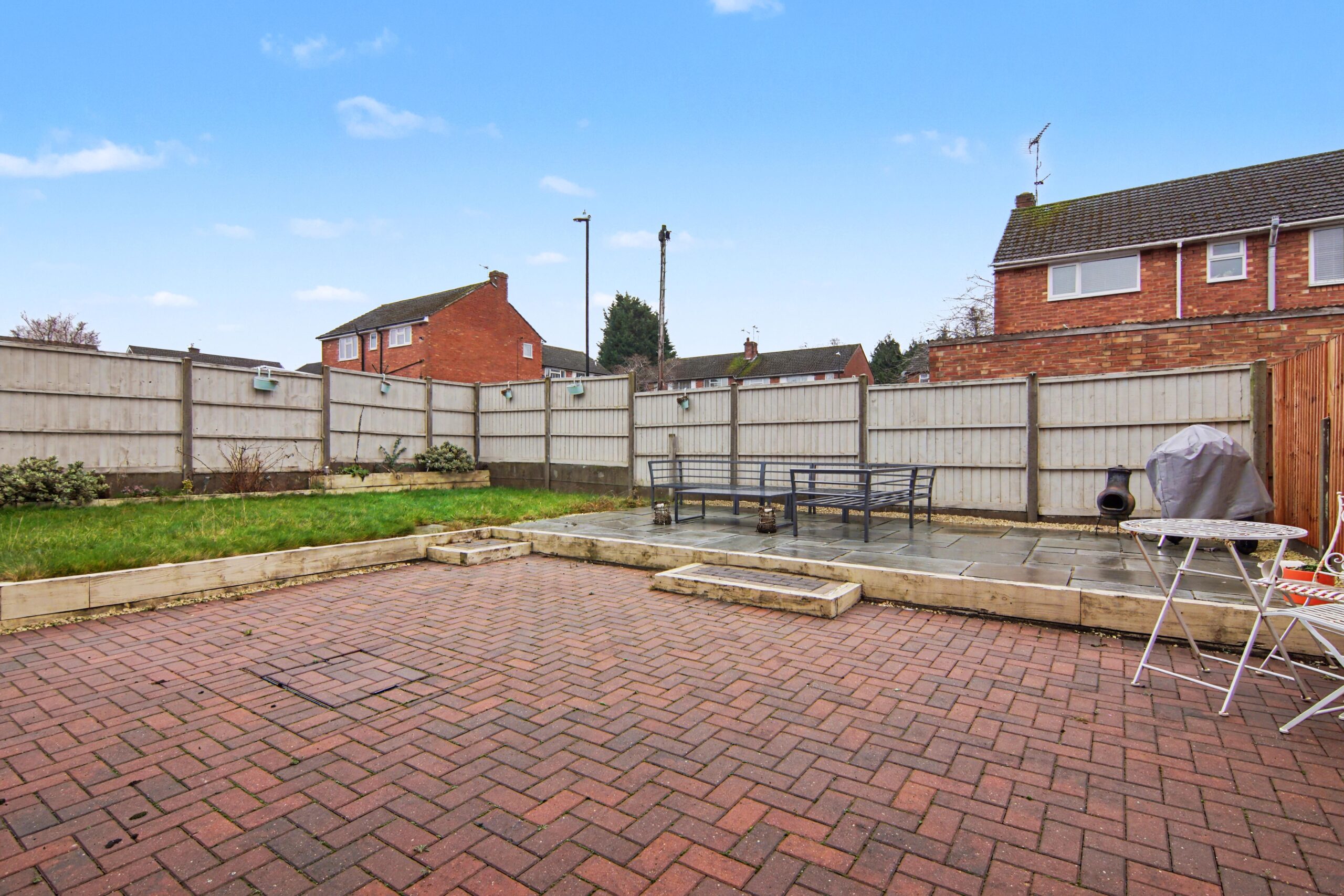 Rear: Lawn | Patio Area | Shed | Shrubs | Low Maintenance | Large Garden