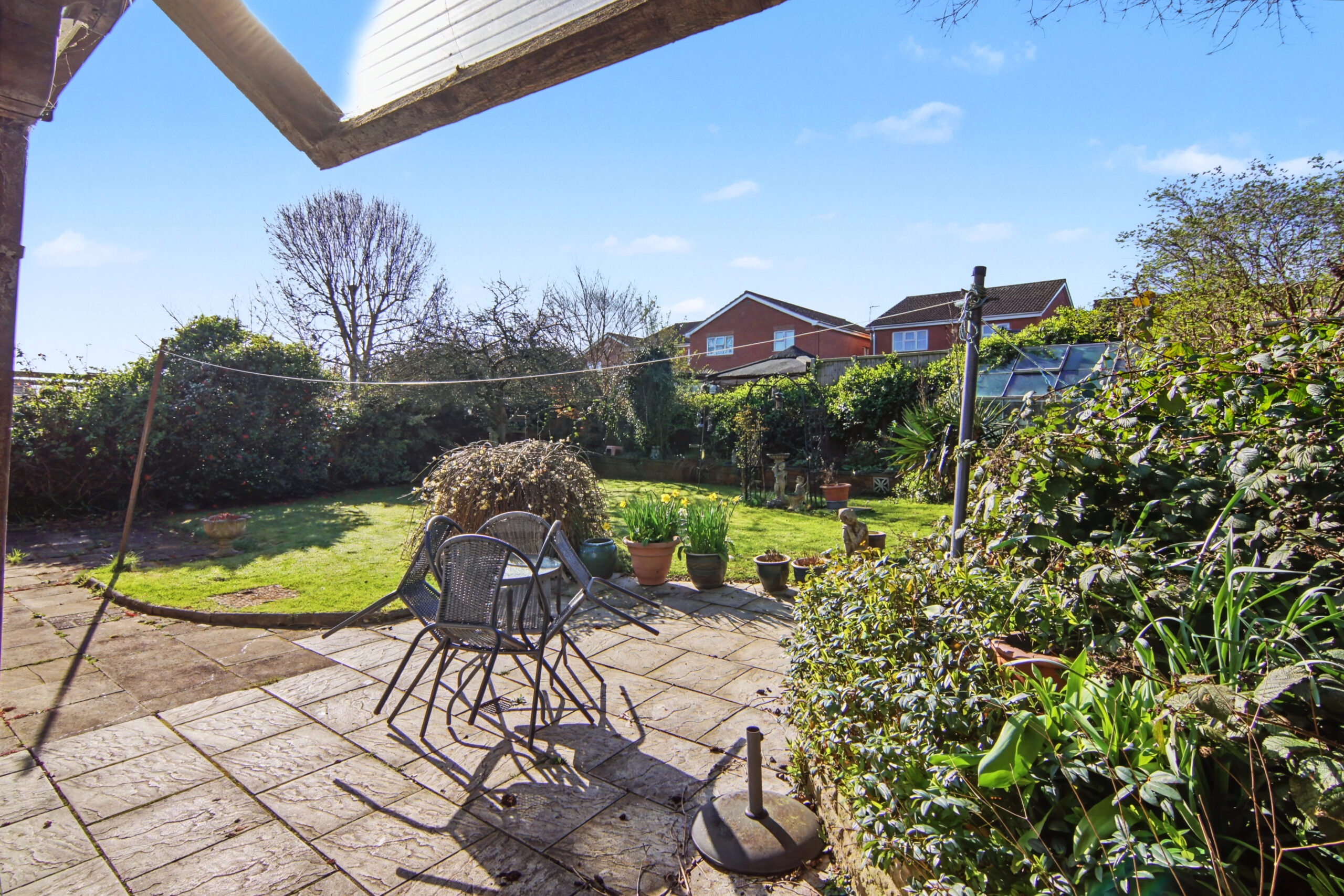 Rear: Lawn | Patio Area | Shed | Shrubs | Mature Garden